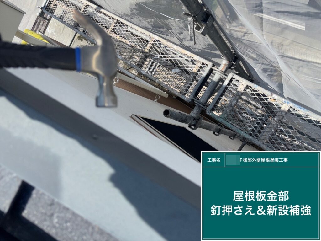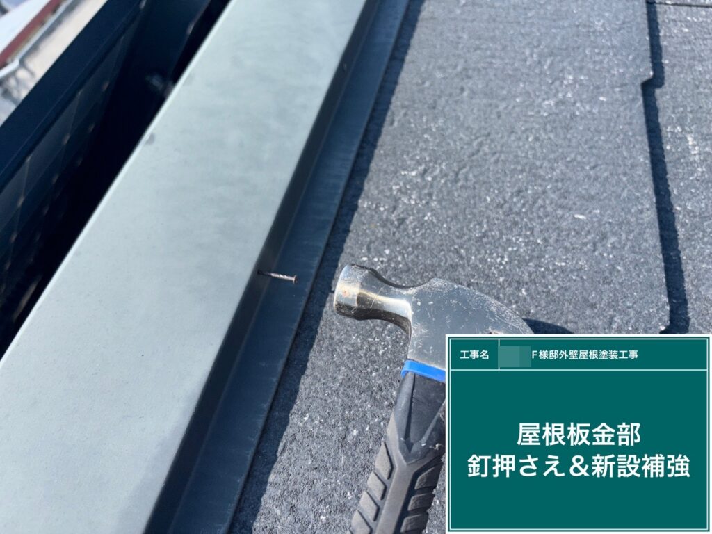 屋根ですが、表層塗膜は完全に劣化しています。反りかえりやクラックが起こる前に塗装が必要です。(反り返りが起こると強風により割れてりまったり、冬場に基材自体に水分を含みやすくなり凍結するとヒビ割れが起きます)。縁切り作業(タスペーサー設置)し、3回塗り致します。