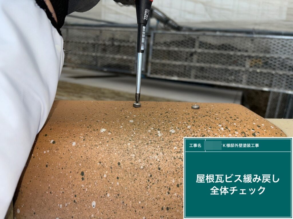 屋根瓦のビスの緩み戻しを行います。