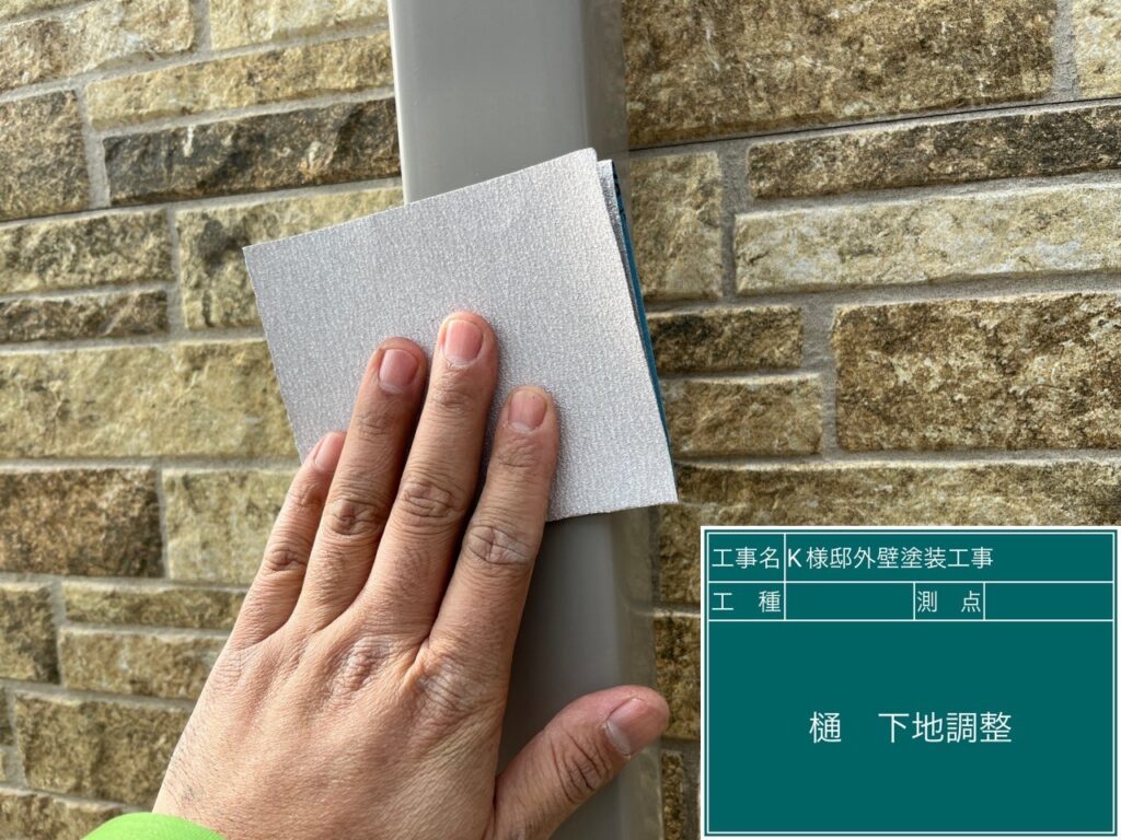 樋の素地調整を行います。