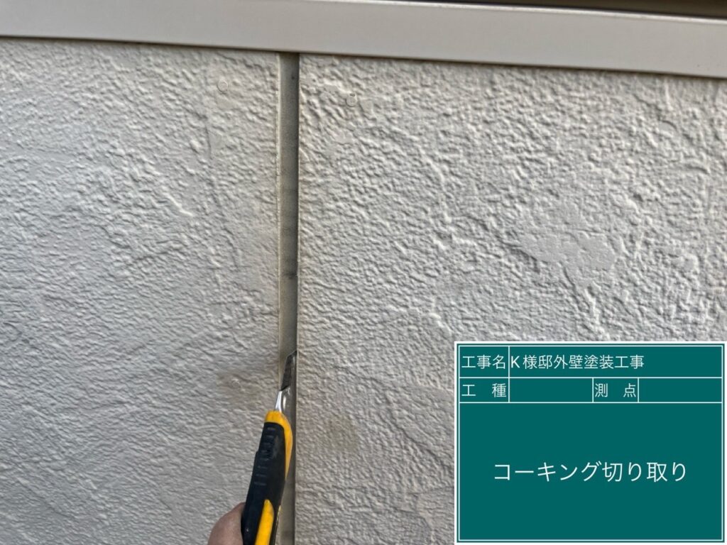 古いコーキングを切り取ります。