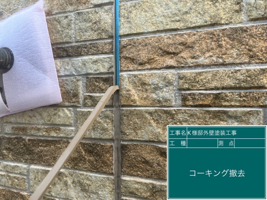 コーキング部分は経年劣化によるひび割れが目立ちました。